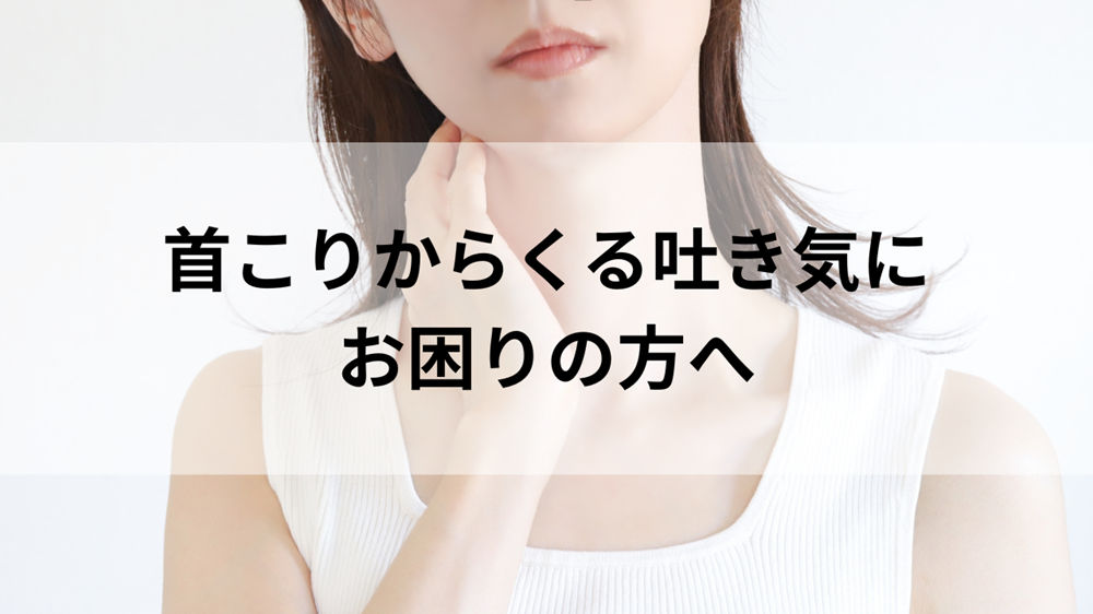 「首がガチガチに凝っていて、なんだか気持ち悪い…」 「吐き気がするけれど、内科に行っても異常なしと言われた」 「仕事に集中したいのに、首の重だるさと吐き気で動けない」